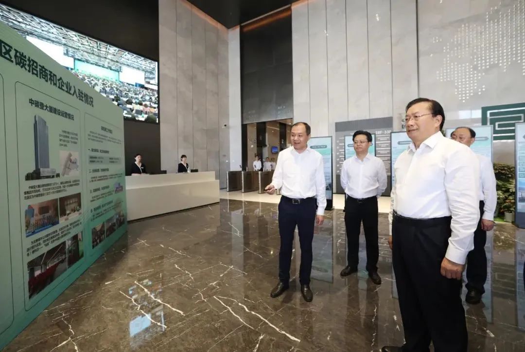 中碳登大廈位于武漢市武昌區(qū),目前已落戶碳研究、咨詢、評(píng)級(jí)、核查、交易、金融等領(lǐng)域企業(yè)和機(jī)構(gòu)30余家。王忠林聽取碳產(chǎn)業(yè)招商情況介紹,考察中國(guó)國(guó)檢測(cè)試控股集團(tuán)湖北分公司、中碳科技(湖北)有限公司、安泰信用評(píng)級(jí)有限責(zé)任公司等入駐企業(yè),希望相關(guān)企業(yè)搶抓機(jī)遇、加快做大做強(qiáng)。他要求相關(guān)方面用好中碳登平臺(tái)優(yōu)勢(shì),打造“雙碳”宣傳的重要平臺(tái)窗口,持續(xù)對(duì)外發(fā)聲,提高知名度和影響力,更好發(fā)揮輻射集聚效應(yīng)。