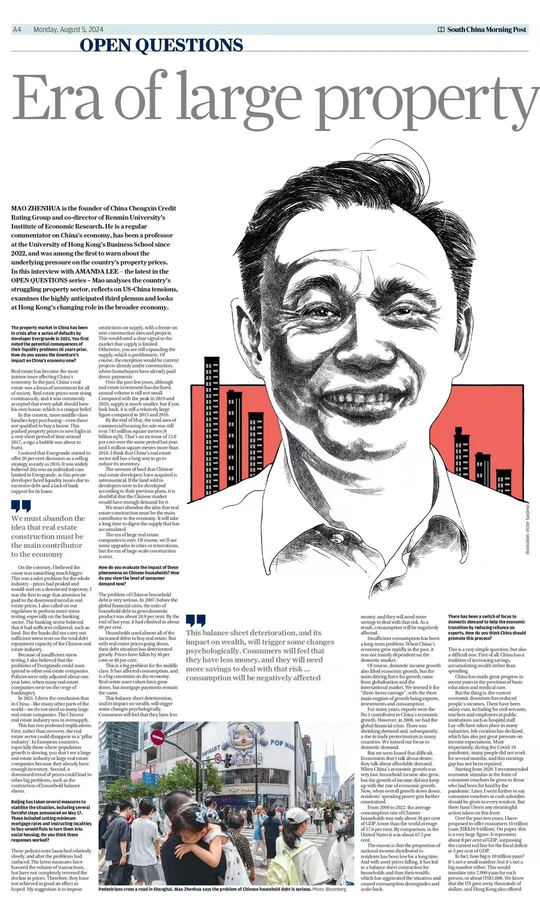 近日,香港南華早報(bào)(South China Morning Post, SCMP)在“開放問題”欄目利用兩個(gè)整版刊登了對毛振華教授的專訪,記錄了毛振華教授對當(dāng)前中國及香港經(jīng)濟(jì)的判斷和建議。南華早報(bào)始創(chuàng)于1903年,不僅是香港銷量最高的報(bào)章,也是亞洲最具公信力和影響力的媒體之一。下文為英文專訪的翻譯稿,閱讀英文原文請掃描下方二維碼閱讀。